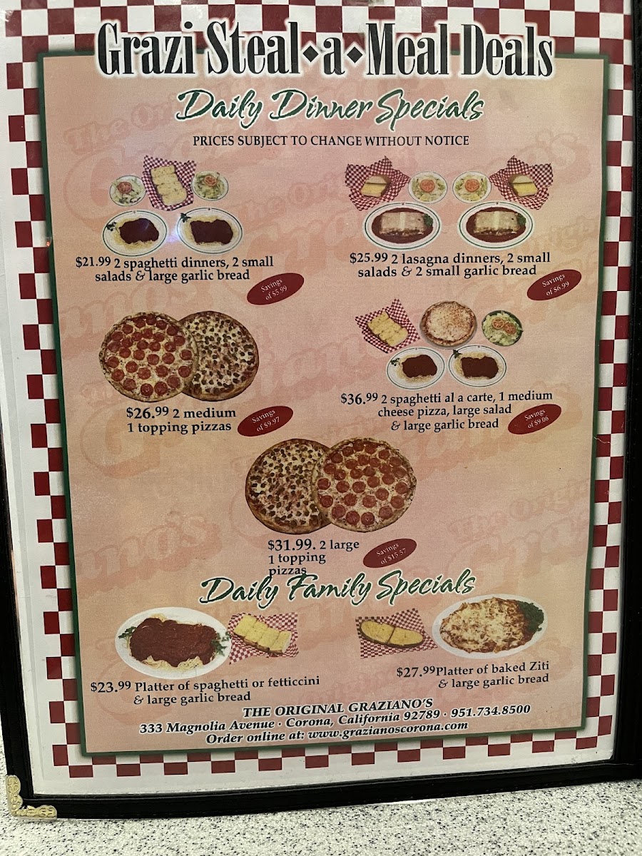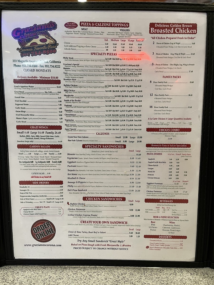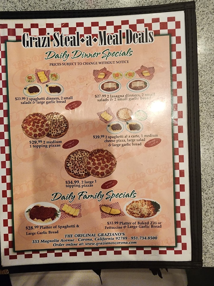 If you're on the hunt for a delightful slice of pizza and an inviting atmosphere, look no further than Graziano's Pizza Restaurant, located at 333 Magnolia Ave in Corona, California. This vibrant pizzeria effortlessly blends a family-friendly vibe with mouthwatering cuisine, making it an ideal choice for gatherings, celebrations, or a casual weeknight meal.